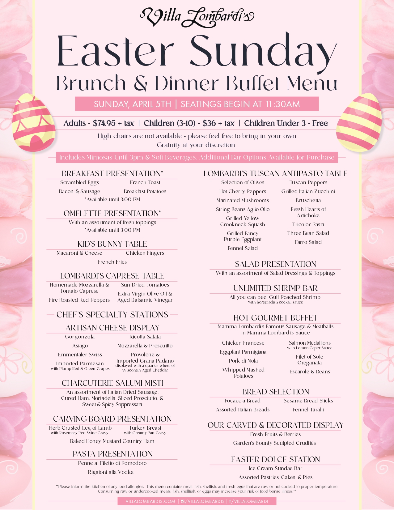 Villa Lombardi’s is the perfect location for any occasion. From weddings and sweet sixteens to corporate parties and reunions, we can do it all. The versatility of our space makes it easier than ever to transform the room into exactly what you envisioned while accommodating any party size for any occasion. The Lombardi’s family is here to share life’s special moments with you.